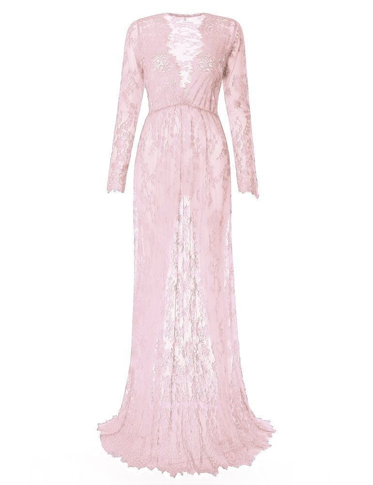 Embrace your beautiful journey into motherhood with our stunning Pregnant Dress Pajamas Lace Maternity Dress. Designed for comfort and style, this floor-length dress is perfect for every occasion, whether you're relaxing at home or attending a special event.
